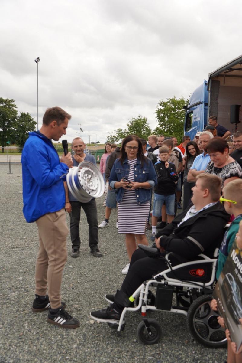 Bohater tegorocznej akcji Pomaganie Za Jechanie Jasiu Szymczak otrzymał zegar z felgi zabytkowego samochodu oraz złoty zegarek od wędkarzy.