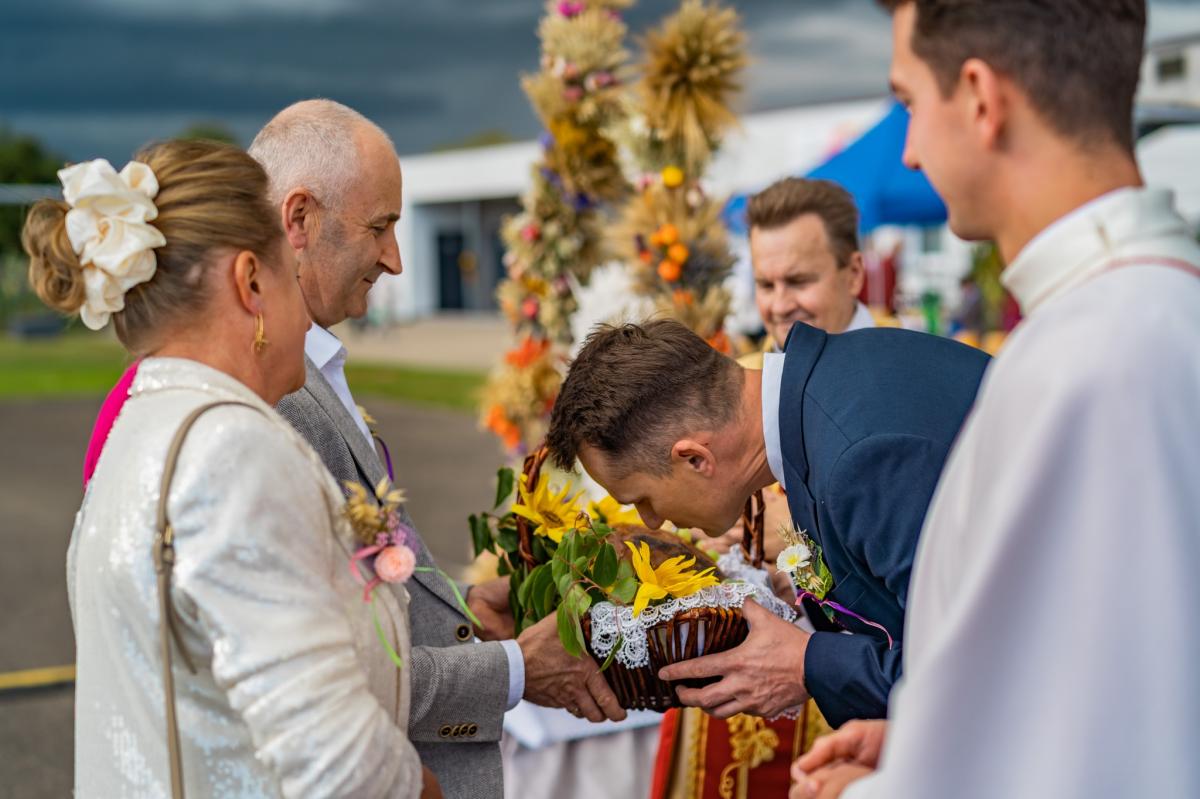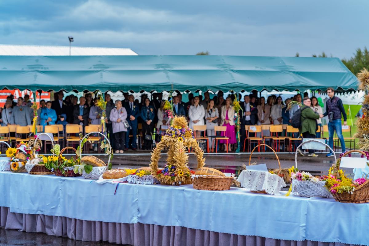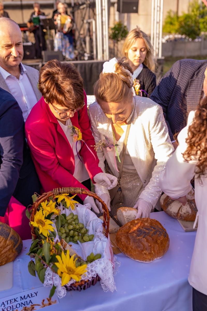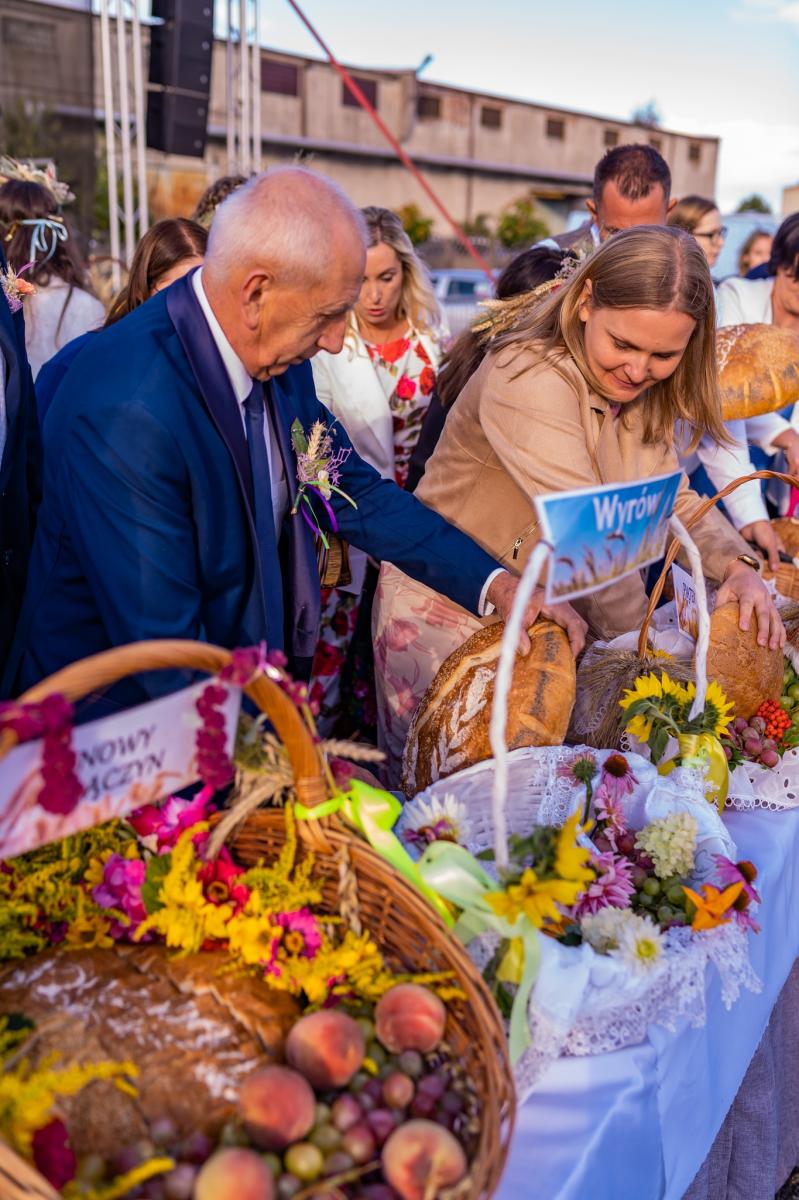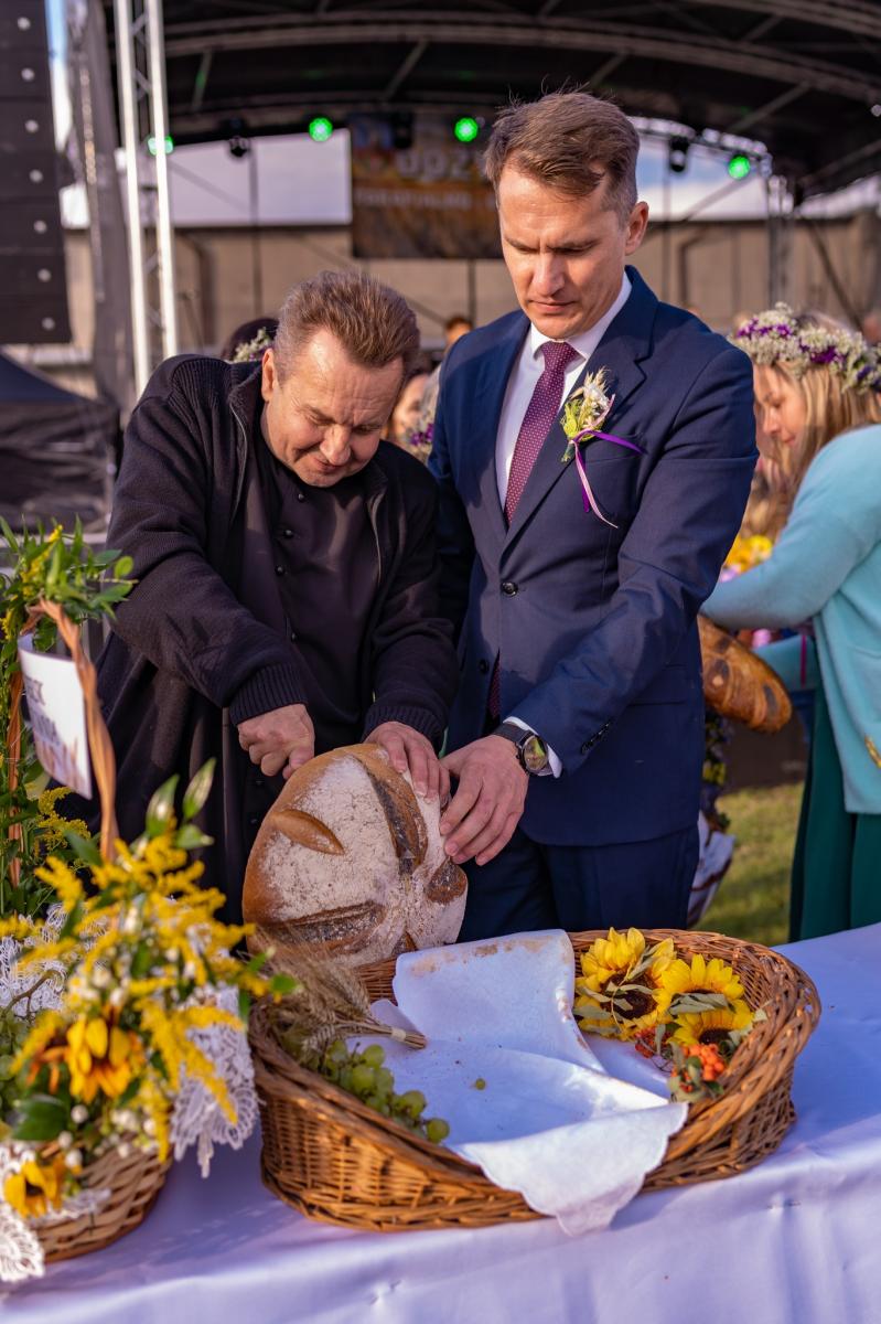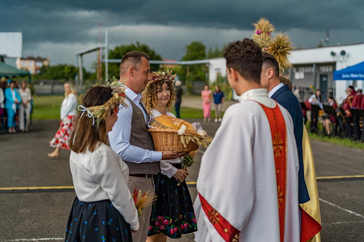 Tradycyjnie Starostowie dożynek Pani Lidia Łyczak oraz Pan Krzysztof Król przekazali na ręce Burmistrza Stawiszyna Grzegorza Kaczmarka oraz Księdza Kanonika Janusza Nowickiego chleb, który jak nakazuje zwyczaj, został podzielony wśród wszystkich obecnych na uroczystościach dożynkowych.