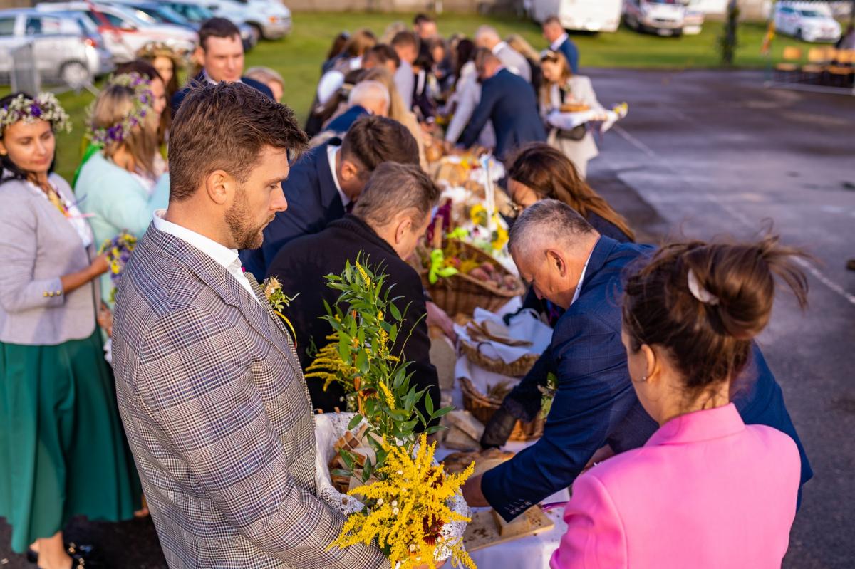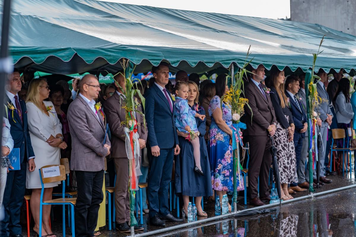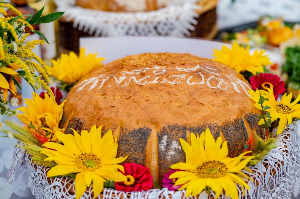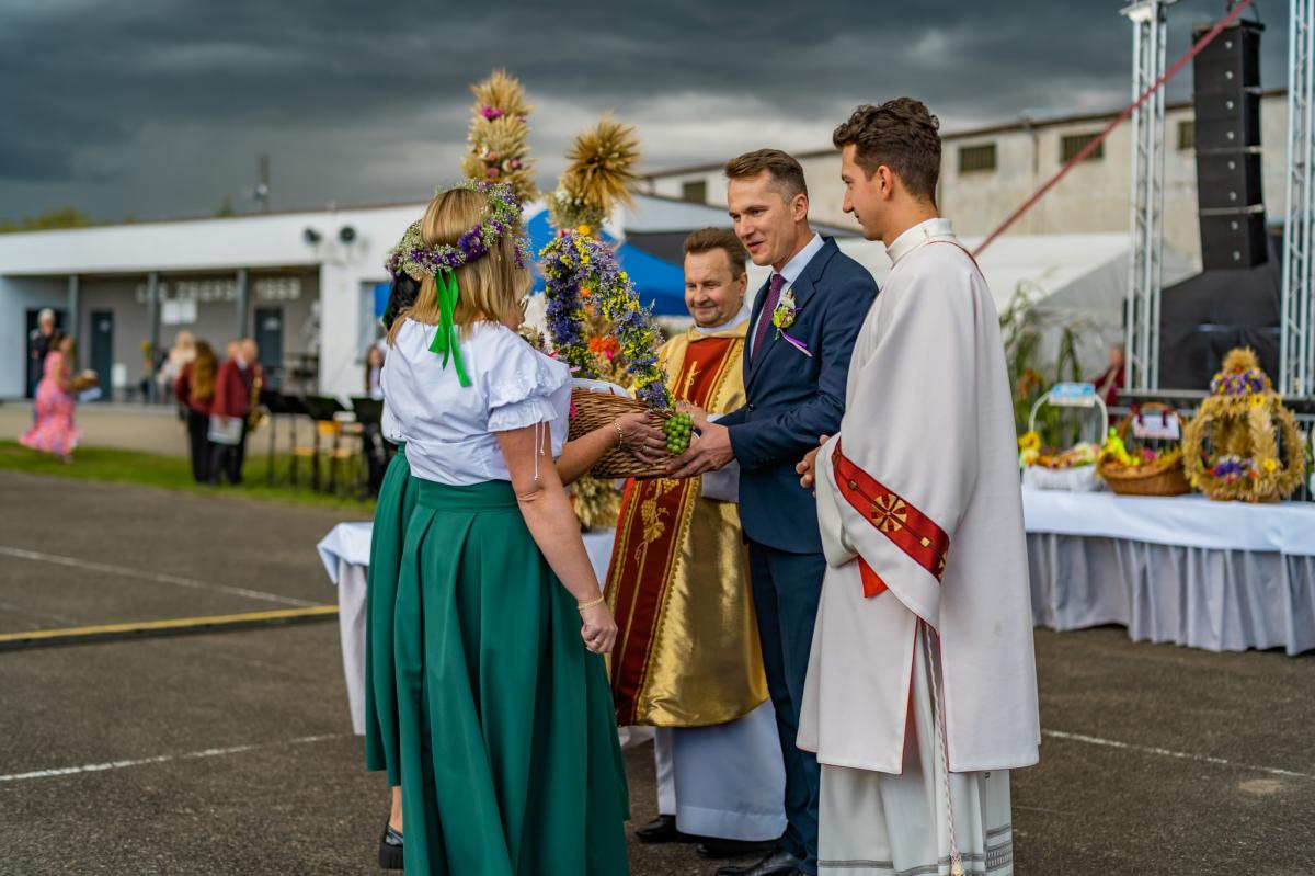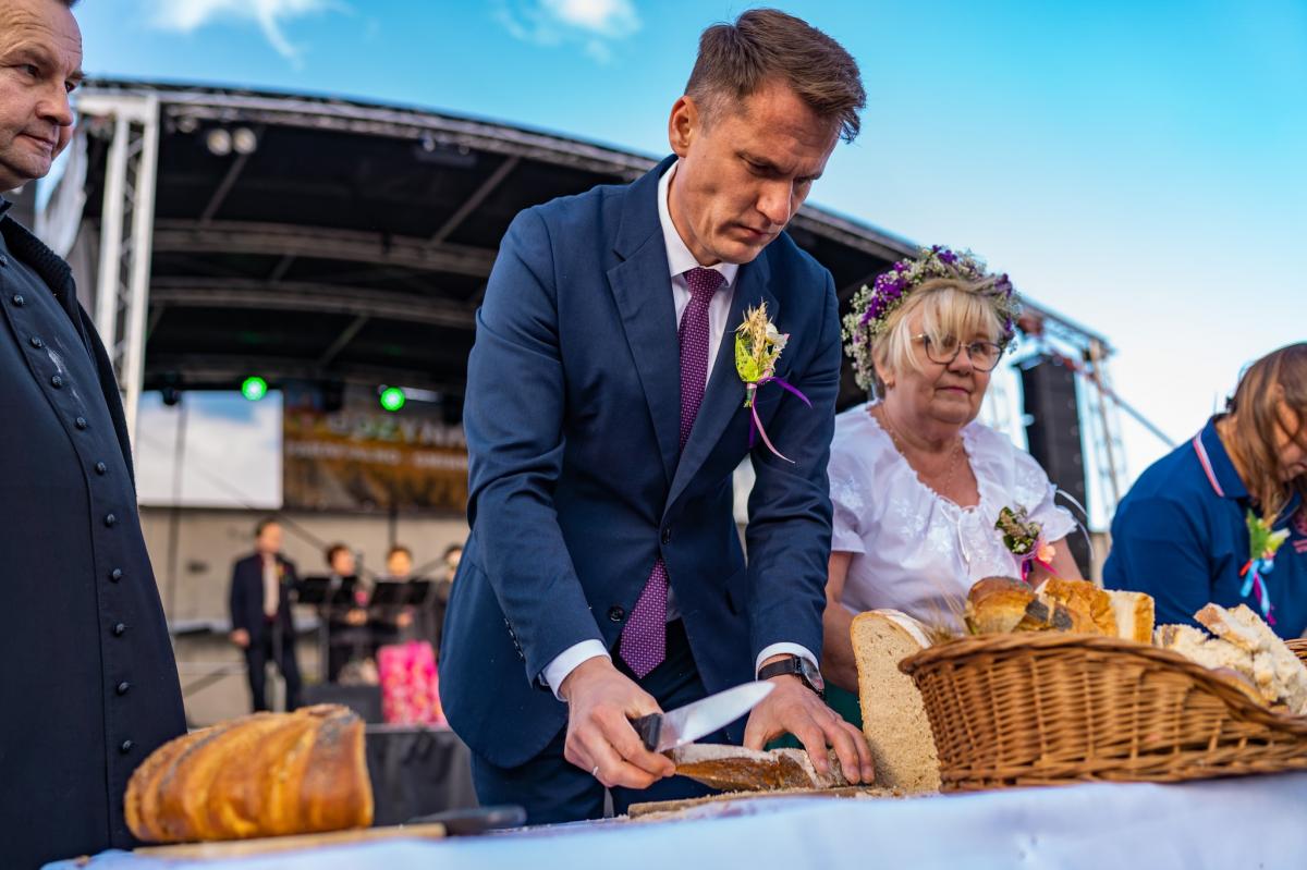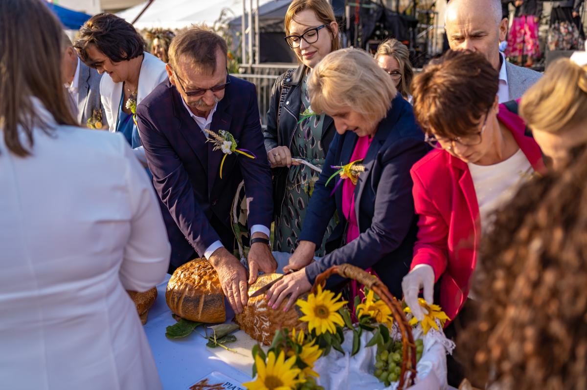 Tradycyjnie Starostowie dożynek Pani Lidia Łyczak oraz Pan Krzysztof Król przekazali na ręce Burmistrza Stawiszyna Grzegorza Kaczmarka oraz Księdza Kanonika Janusza Nowickiego chleb, który jak nakazuje zwyczaj, został podzielony wśród wszystkich obecnych na uroczystościach dożynkowych.