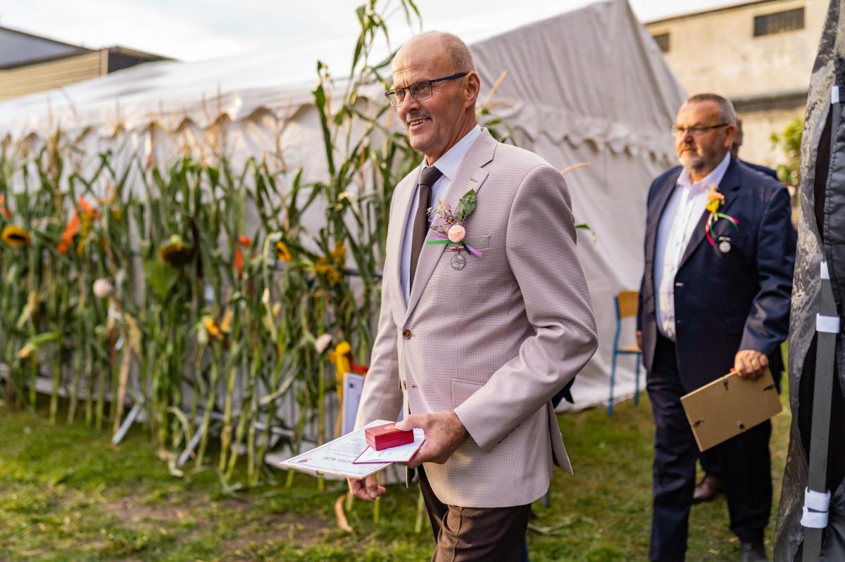 Tegoroczna uroczystość dożynkowa była również okazją do wręczenia nagród i podziękowań zasłużonym rolnikom z terenu Gminy i Miasta Stawiszyn.