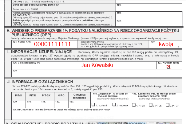Należy wpisać w rocznym zeznaniu podatkowym w rubryce „1% na rzecz OPP”