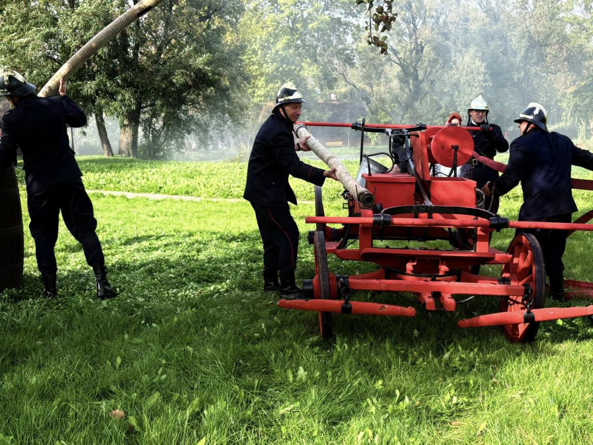Stroje z epoki, w których wystąpili strażacy zostały zakupione przy wsparciu Samorządu Województwa Wielkopolskiego w ramach konkursu „Nasza wieś, naszą wspólną sprawą”.